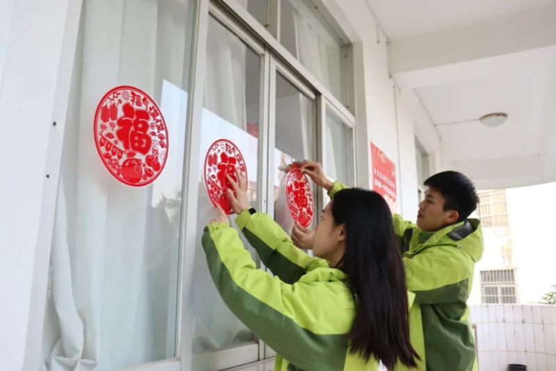 新妝巧飾。駐地里,剪紙掛飾情更濃。美如畫,希望開啟春光里。