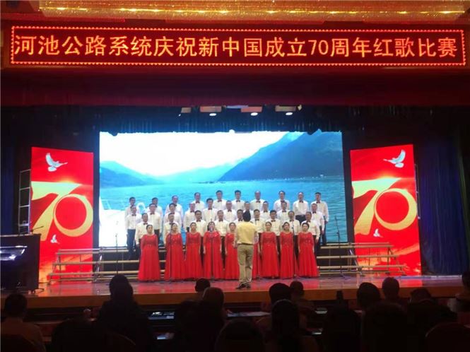 新中國(guó)成立70周年的光輝節(jié)日,向我們闊步走來(lái),北投交通養(yǎng)護(hù)科技集團(tuán)天峨公路養(yǎng)護(hù)項(xiàng)目部的全體工作人員與天峨公路管理局全體職工,組成合唱團(tuán)站上了河池公路系統(tǒng)慶祝新中國(guó)成立70周年紅歌比賽的舞臺(tái)上,用最嘹亮的歌聲和最真摯的情感,滿懷激情表達(dá)對(duì)新中國(guó)成立70周年的祝福。