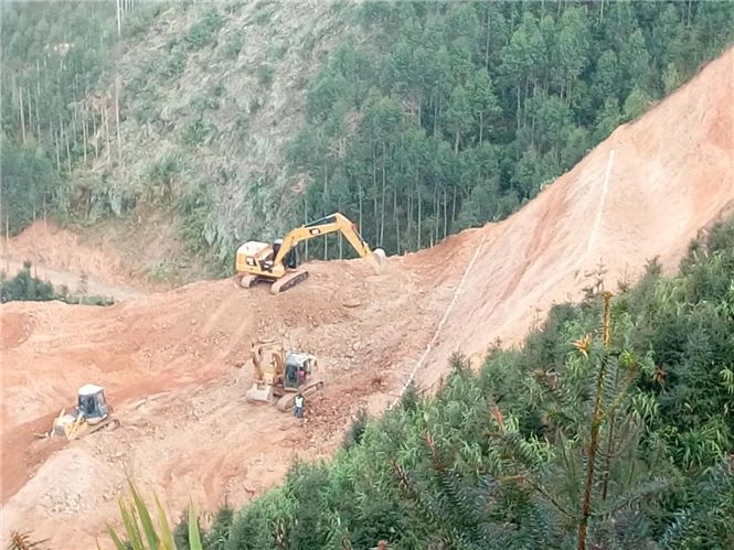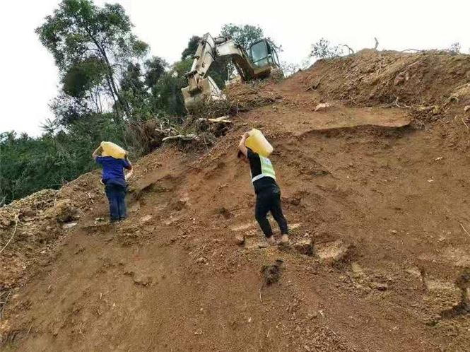 這一切喜悅都是我們施工現(xiàn)場管理人員、測量人員、機(jī)手和工人付出許多汗水收獲的。他們年輕有朝氣、團(tuán)結(jié)一致、服從安排、任勞任怨,為項(xiàng)目施工進(jìn)度的推進(jìn)起到了不可替代的作用。項(xiàng)目現(xiàn)場的同事們每一天都在現(xiàn)場施工管理員譚忠佳的軍隊(duì)號(hào)角鈴聲中準(zhǔn)時(shí)起床,簡單的洗漱和早餐后,一天忙碌的工作就開始了。即使是中午也常常忙得忘了吃飯時(shí)間,到了晚上加班加點(diǎn)也已經(jīng)是常態(tài)。有一段施工點(diǎn)是在山谷里面,施工便道只可以機(jī)械通行,車輛無法進(jìn)入,施工人員進(jìn)出都是靠兩條腿,一走就是半個(gè)多小時(shí)的路程,更艱苦的是要爬一段兩三百米高而且接近70度的陡坡,更累的是我們的機(jī)手,保養(yǎng)機(jī)子要抗一桶五十斤重的機(jī)油上去,困難可想而知。而我們的現(xiàn)場管理人員譚忠佳一天更是兩趟來回,上班指導(dǎo)開挖,中午送飯送水。看著他每天汗流狹背,常常問他累嗎,他總是笑笑說:“只要不下雨,能按施工節(jié)點(diǎn)完成計(jì)劃任務(wù)再累也不覺得累,看著這一天天變化心里兒高興”。是的,即使天空都布滿了星云,我們也只是抬頭望一望,仿佛是照亮我們心中的信念,繼續(xù)我們前進(jìn)的路。